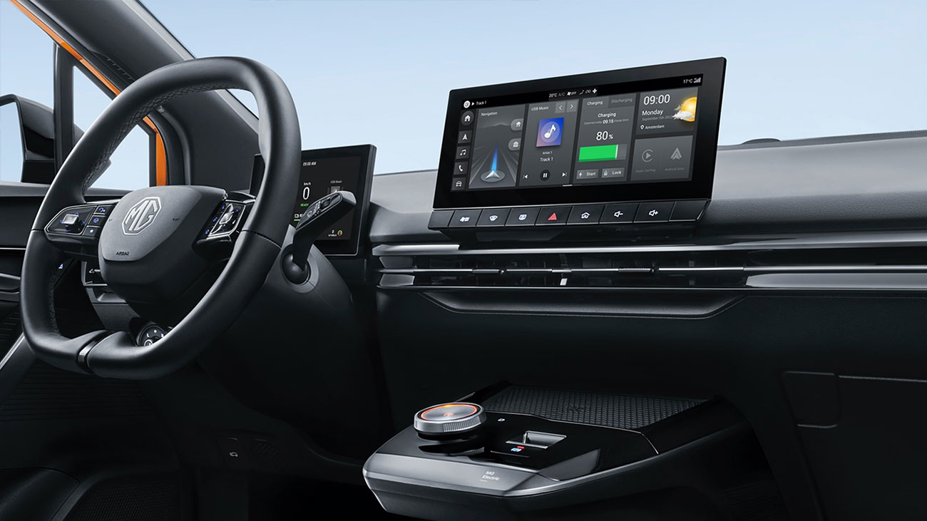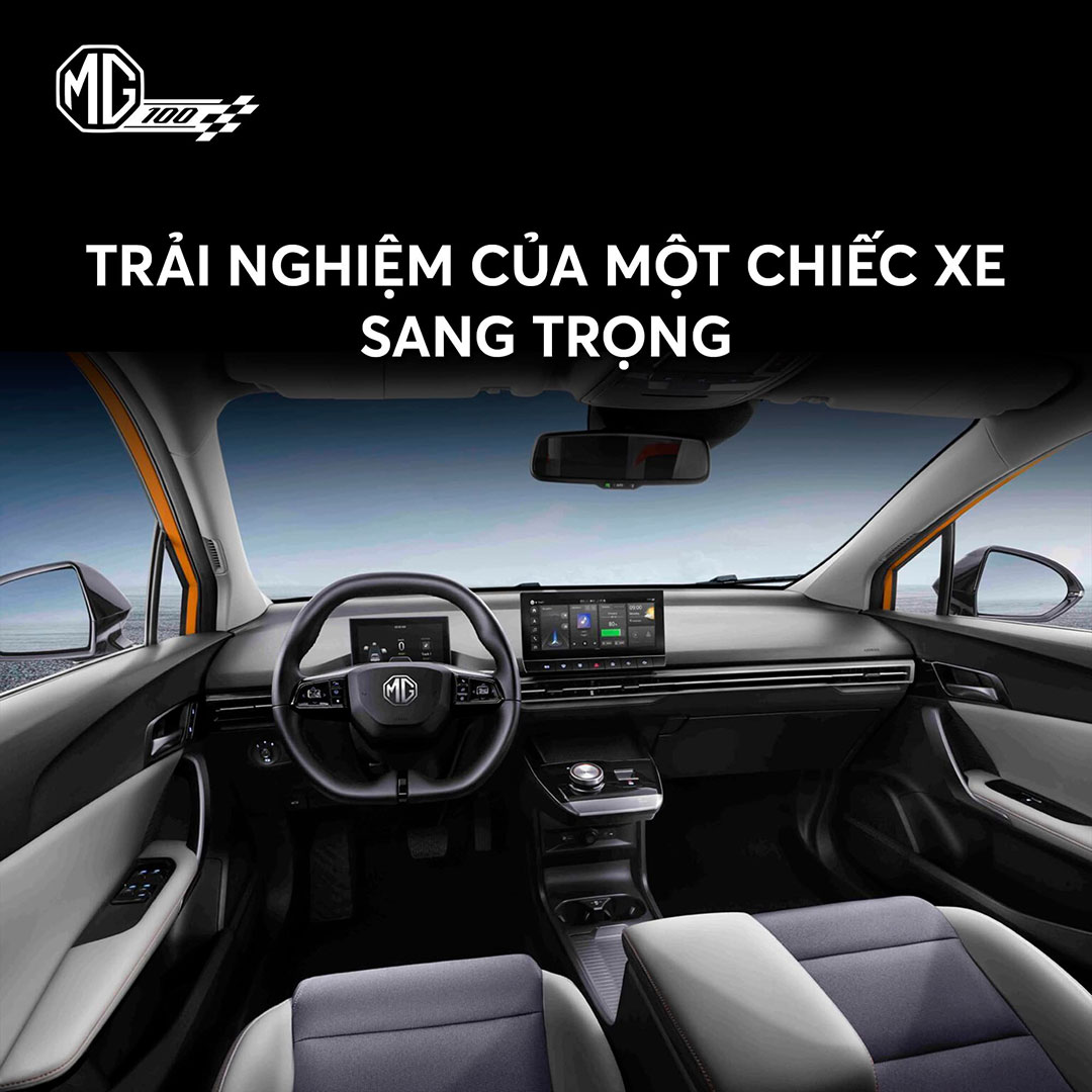 Xe điện MG4 không chỉ nổi bật với ngoại thất hiện đại mà còn sở hữu nội thất tiện nghi và sang trọng. Xe được trang bị bảng táp-lô với thiết kế tối giản và tinh tế. Không gian nội thất rộng rãi với khoảng trống đầu lớn nhờ vào thiết kế pin mỏng chỉ 110 mm, kết hợp với kính chắn gió rộng, cùng cửa sổ bên lớn tạo tầm nhìn thoáng đãng cho người ngồi trong xe.